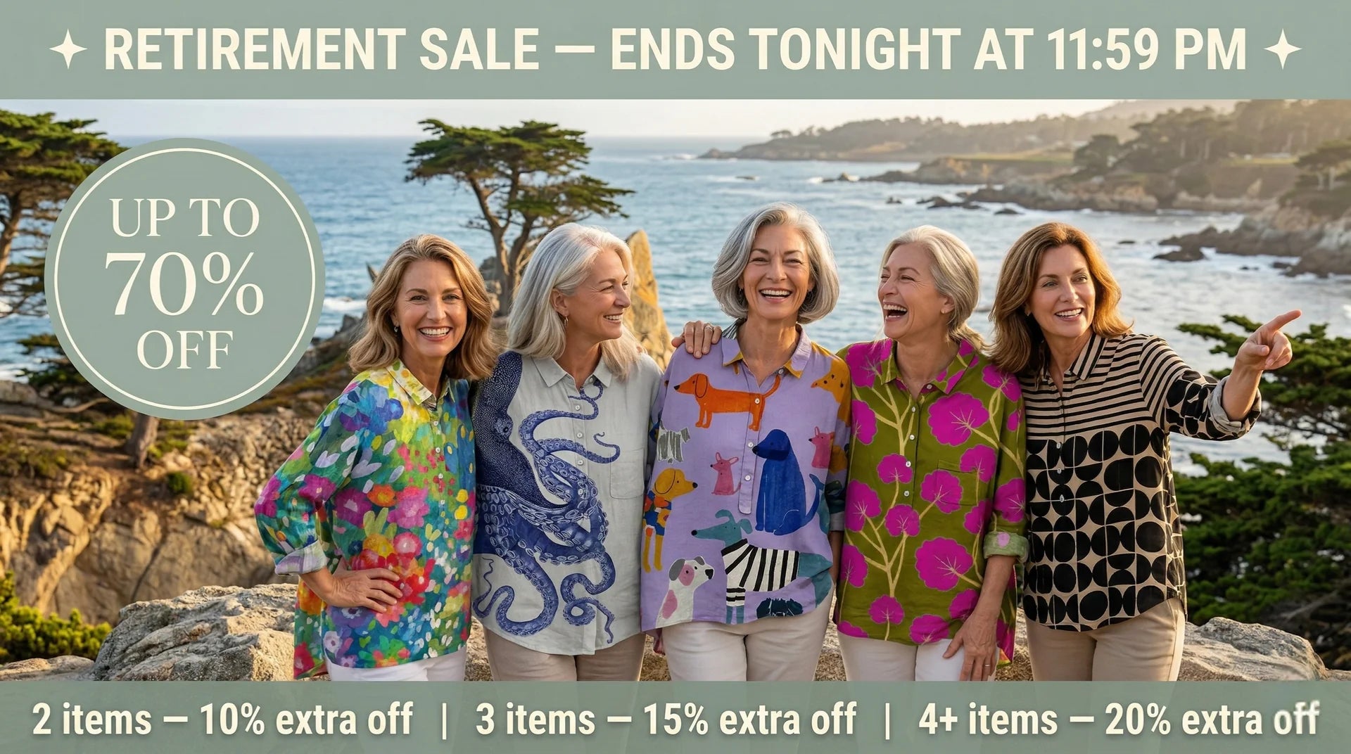 For over 40 years, designing for women has been one of the greatest joys of my life. What began as a small dream slowly grew into a beautiful journey shared with thousands of wonderful women. But the moment has come sooner than I ever expected. Due to the challenges of this past year, I’ve made the difficult decision to retire earlier than planned — and close my boutique for good.